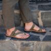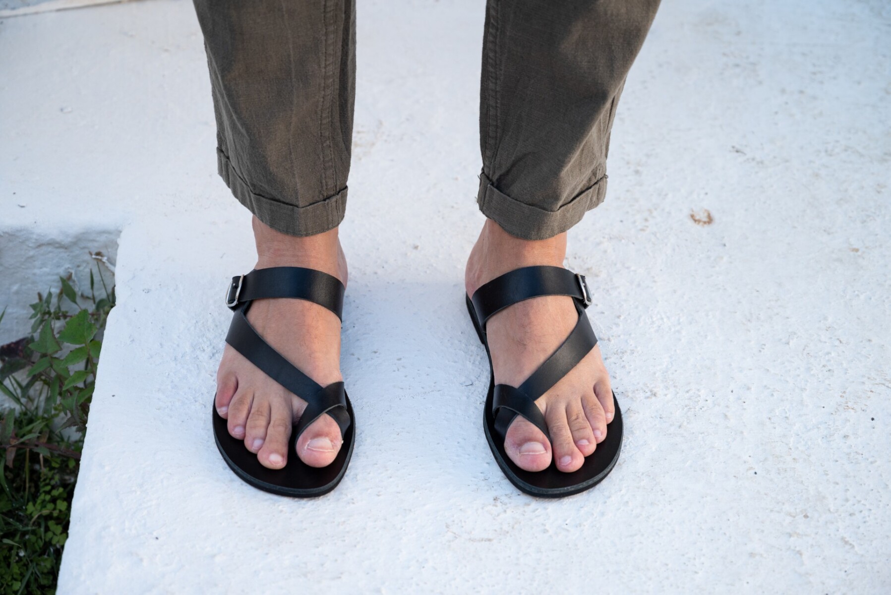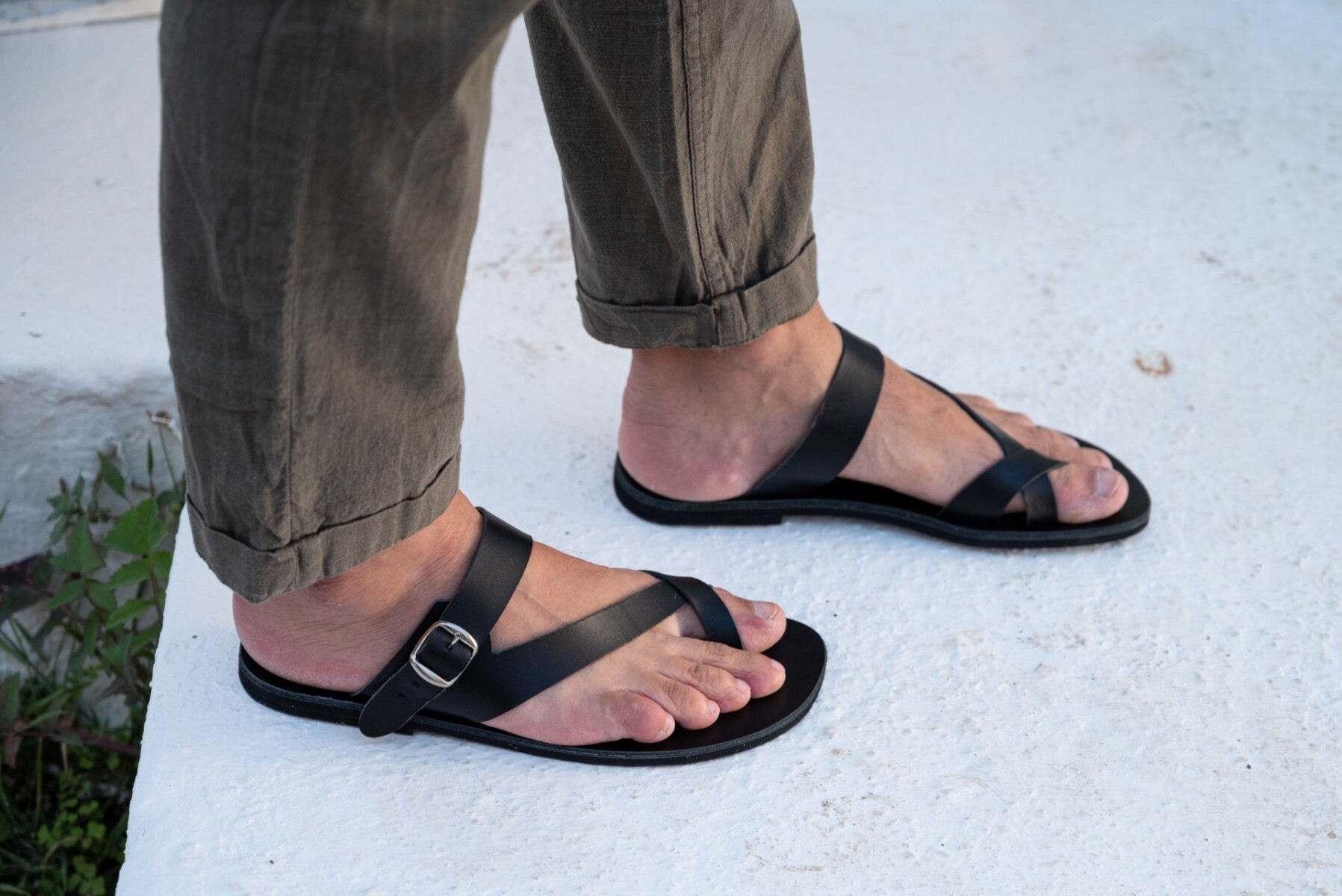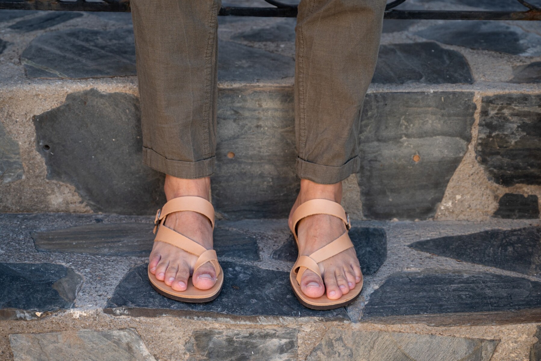Clean design with timeless aesthetics. The men's sandal Astrikas stands out for its simple line, with an adjustable leather strap on the rocker and a discreet cross strap that hugs the big toe. Easily worn from morning to night, it is ideally paired with linen trousers or short shorts and adds an unpretentiously elegant touch to any summer look.