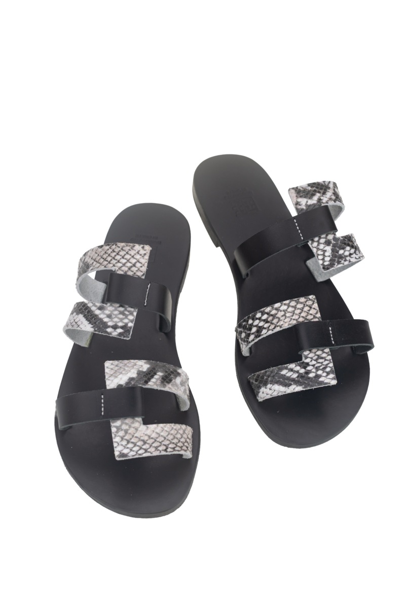 Discover the ultimate summer statement piece that combines comfort with irresistible style. The Menies with a unique design and special stripes, it hugs the foot with elegance and dynamism. Choose it in timeless black with snake skin for stunning looks, warm brown with leopard print for boho vibes or platinum with glitter for a more glam version.